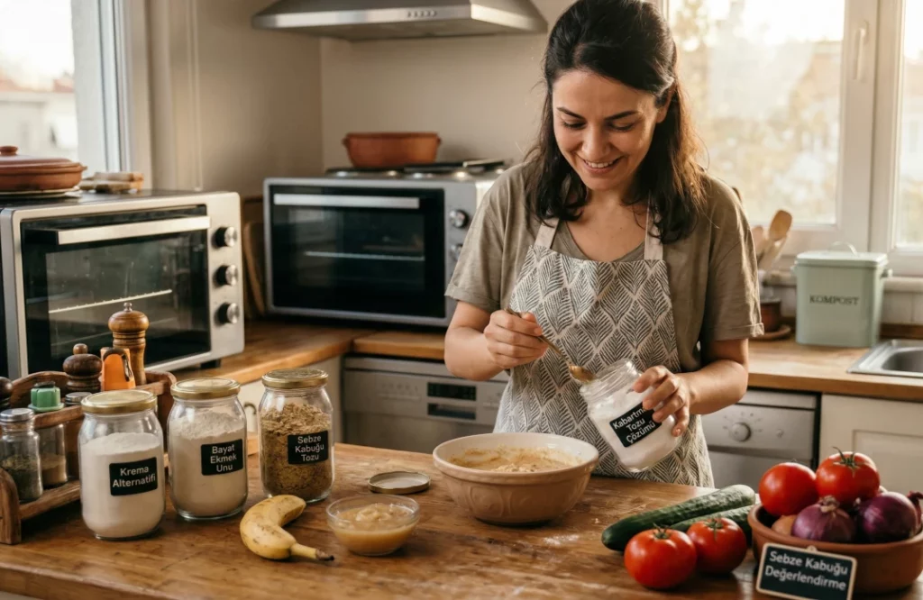 “Tam keki fırına vereceksiniz ama o da ne? Kabartma tozu bitmiş. Ya da makarnanın o efsane sosu için krema kalmamış… Hemen markete koşmanıza gerek yok. Mutfaktaki malzemelerin birbirinin yerine geçebileceği o gizli dünyayı keşfettik. Üstelik çöpe atmaya kıyamadığınız o bayat ekmekler ve sebze kabukları için de bir planımız var!”
